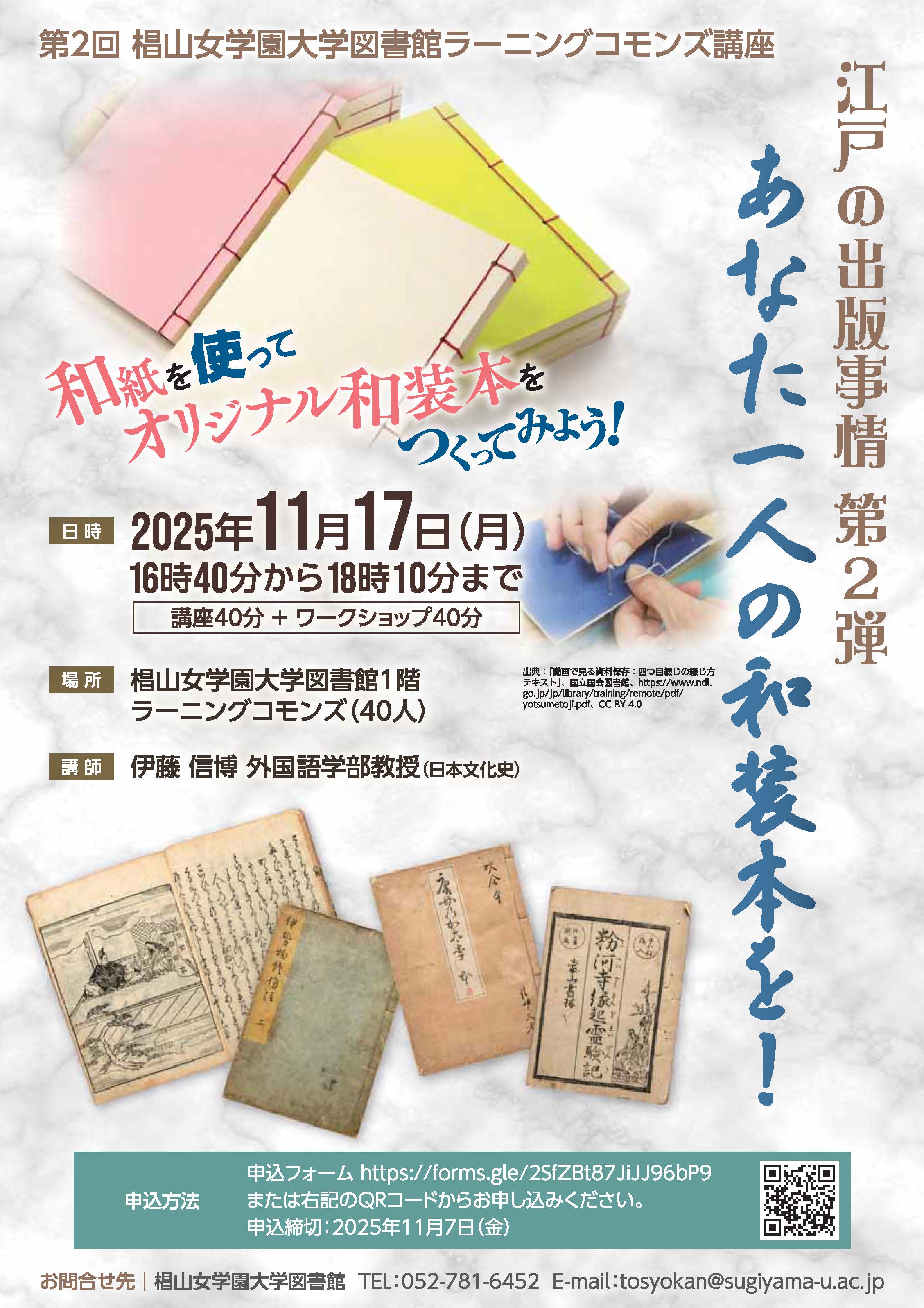 外国語学部 伊藤信博教授にご講話いただき、ワークショップでは、和装本を作ります。